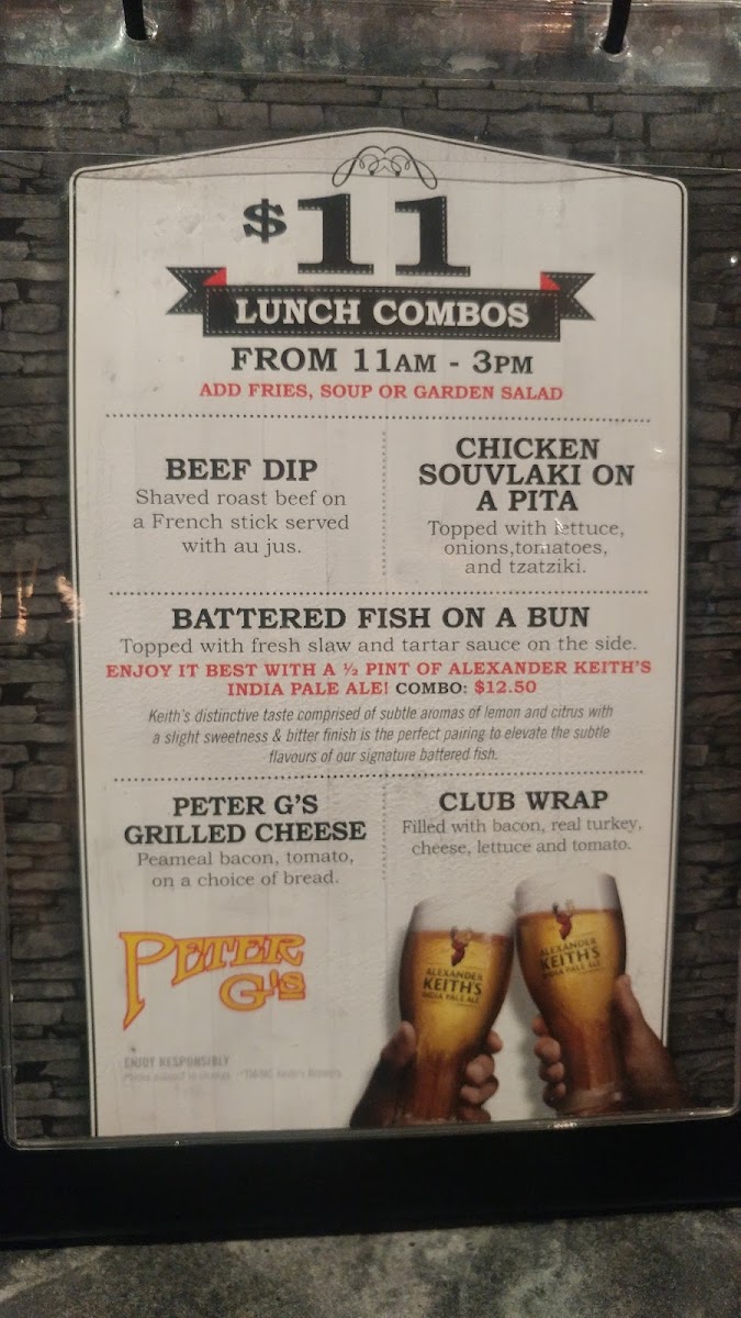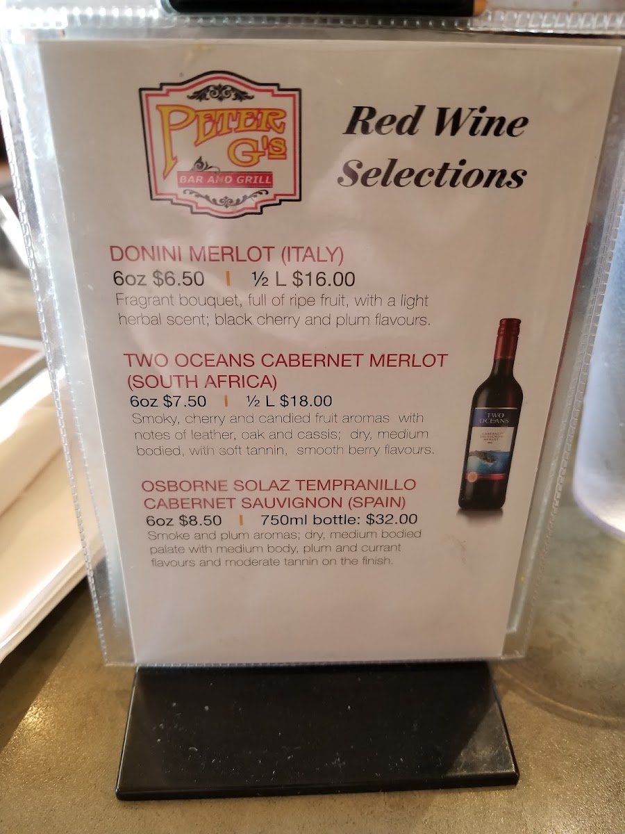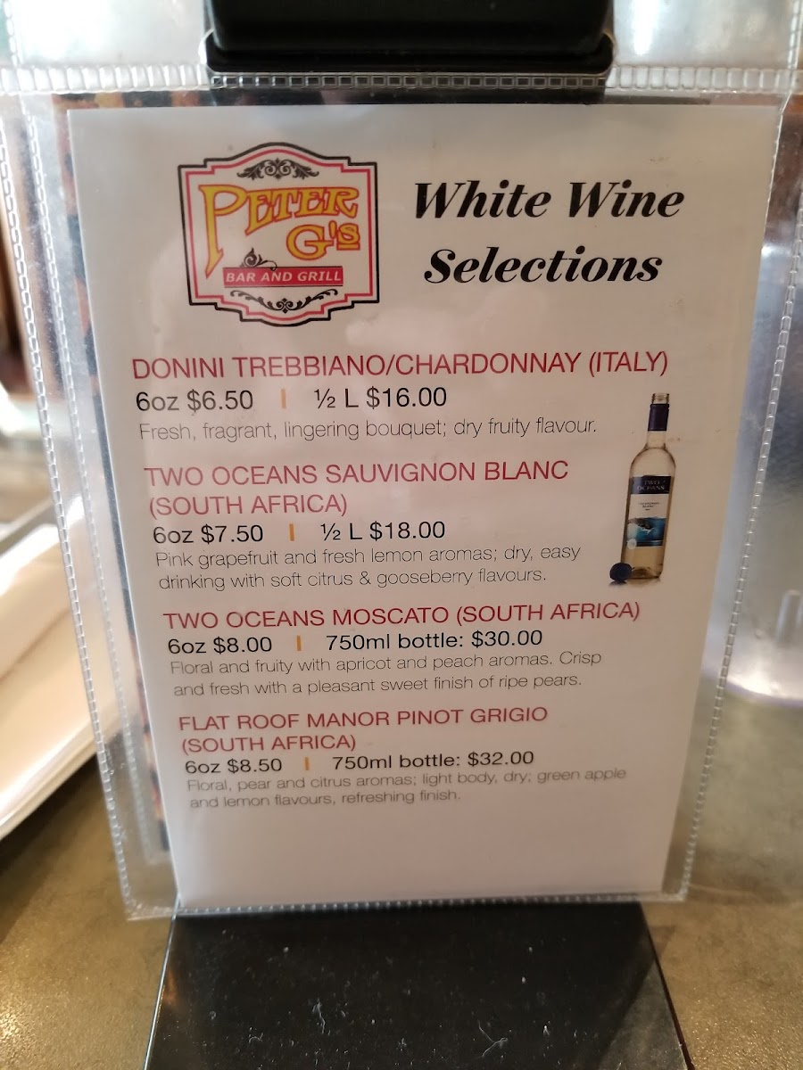 Cuisine Type: Mixing classic Canadian comfort food with delightful Greek-inspired dishes, Peter G's offers a robust menu perfect for breakfast, lunch, or dinner. From their all-day breakfast options, which include items like Eggs Florentino bursting with flavor, to hearty burgers and fresh salads, every dish reflects the use of high-quality ingredients. The bar also features a nice selection of wines including Donini Merlot and Two Oceans Sauvignon Blanc, ensuring that every meal can be perfectly paired.